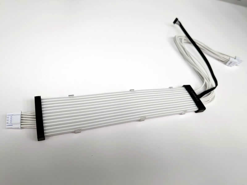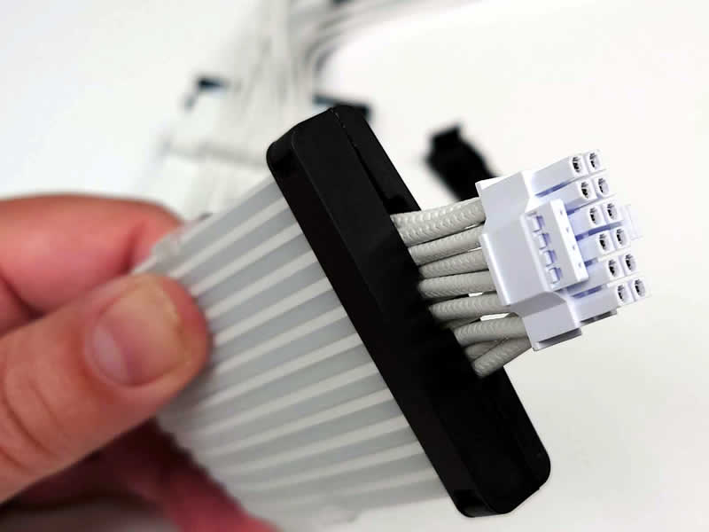 Now we're going to put the 12VHPWR cable that came with our PSU in place of the extension. The secret here is to get it as flat as possible. The method of doing this is going to vary depending on whether you have individually sleeved, flat cables or embossed cables like I have here in this photo: