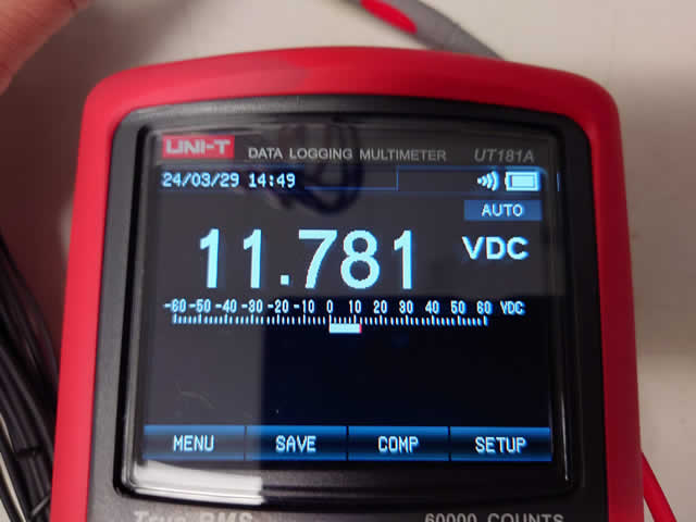So we're seeing a drop of 0.214V through the cable. Now I'm going to add the Strimer Plus V2 and measure at the PSU again: