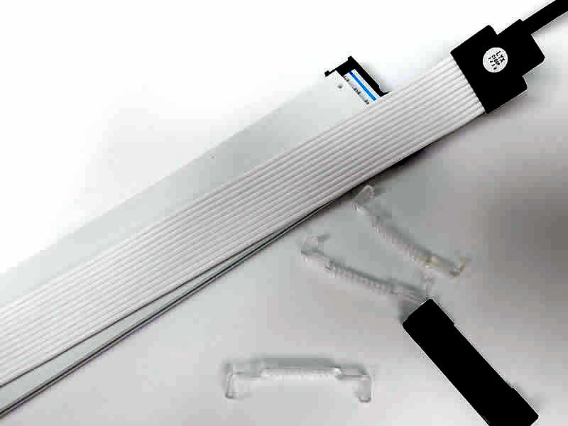 Start with the clear clips since these have grooved in them that help separate the wires of the cable. Eventually, you'll have all three clear clips in place: